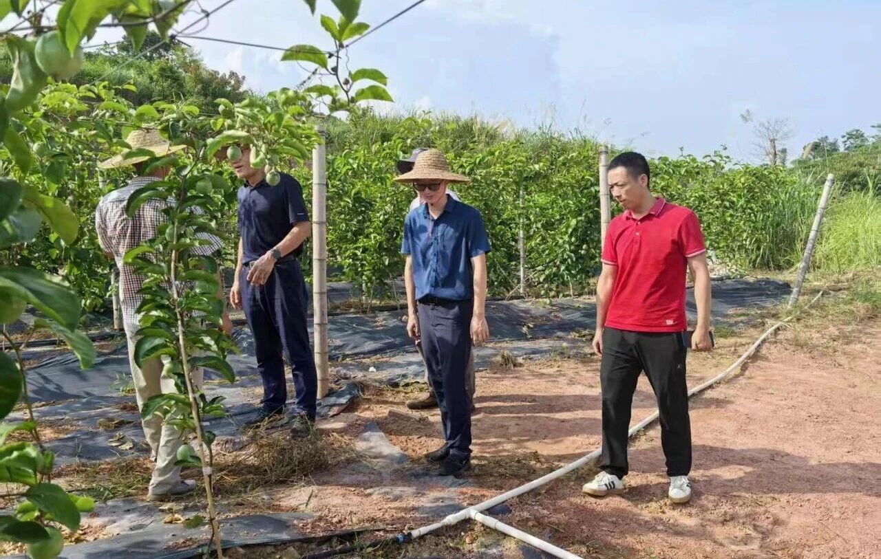图 黄欢喜(右一)跟队到邻县百香果基地学习